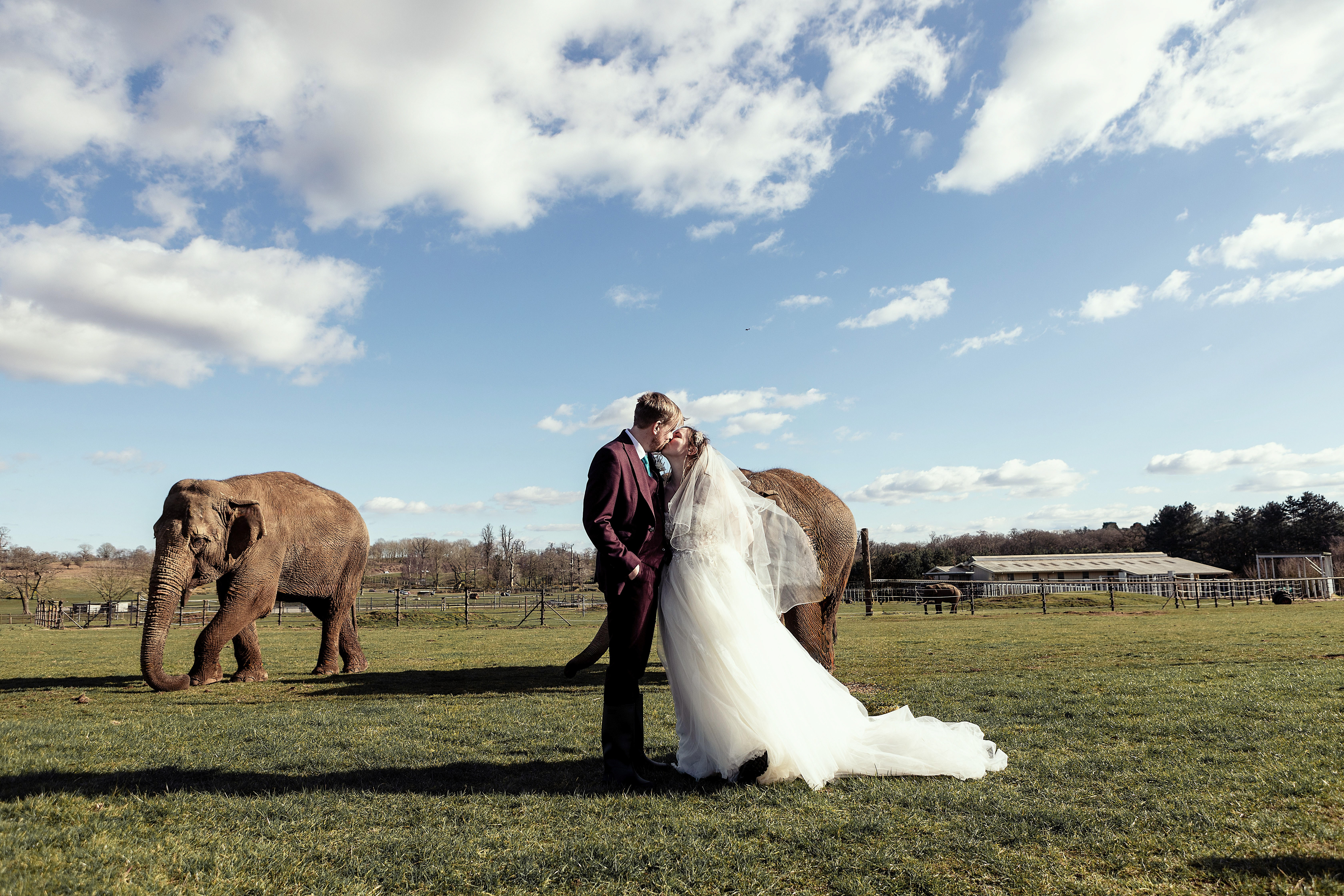 Heather and Michael celebrated their wedding at Woburn Safari Park, calling it ‘the best kid’s day out ever!’ Surrounded by elephants and exotic wildlife, the day was filled with joy, laughter, and shared moments with family and friends, creating lasting memories in a truly unique setting.